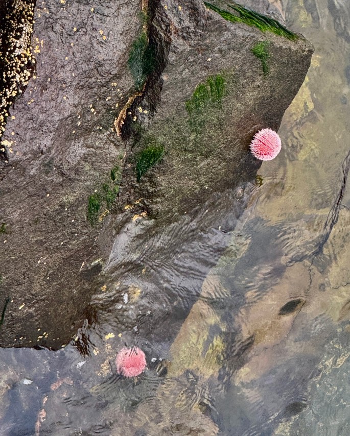 Weather was drizzly and overcast at first….enlivened by gray landscapes, minor monuments, dramatic rock faces and sea birds.