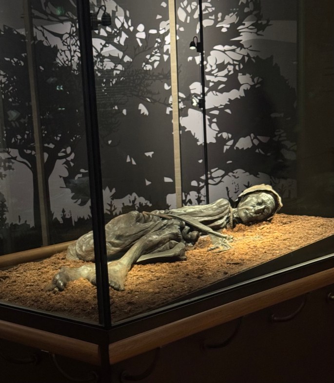 And now we return to what has become a theme on this trip….. peat bogs! Do you know about the bog people? Peat bogs are uniquely suited to preserving things…. Including human remains.