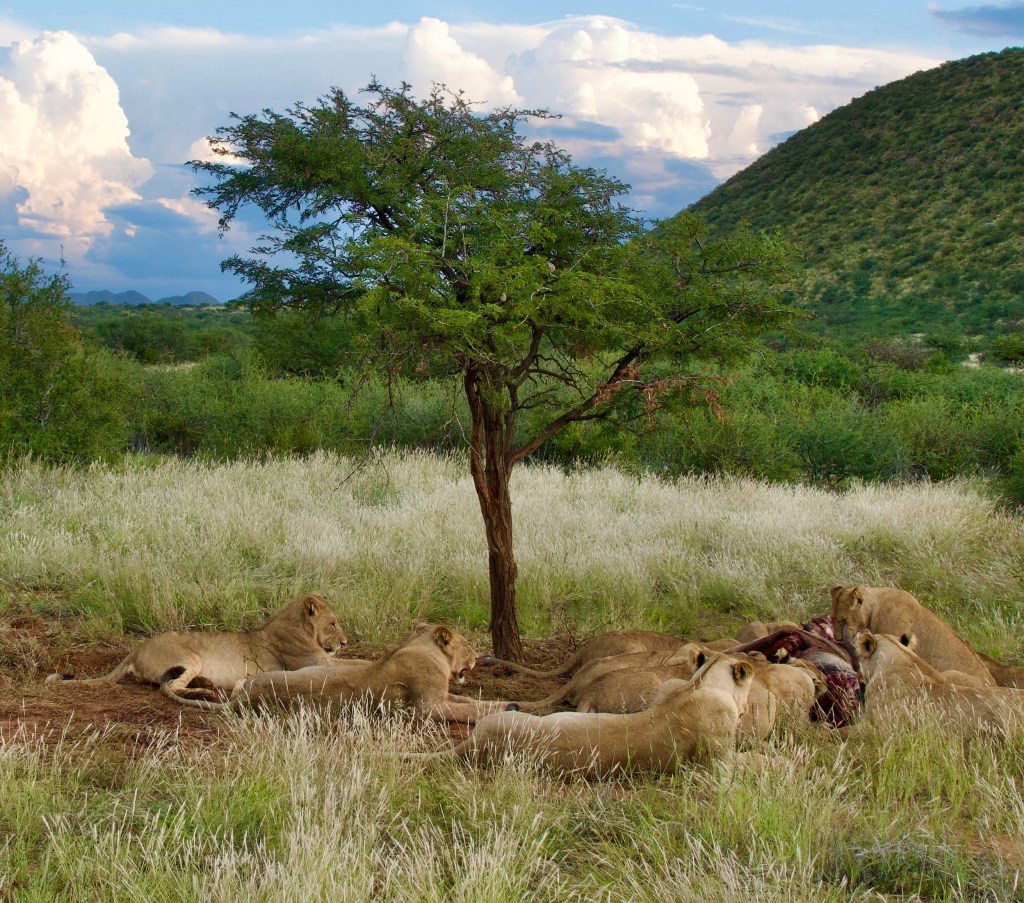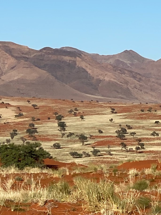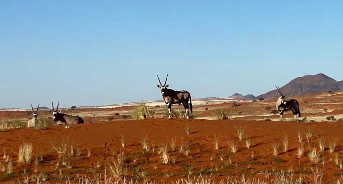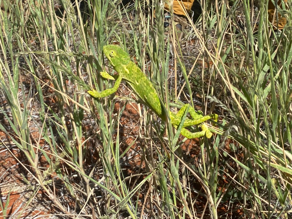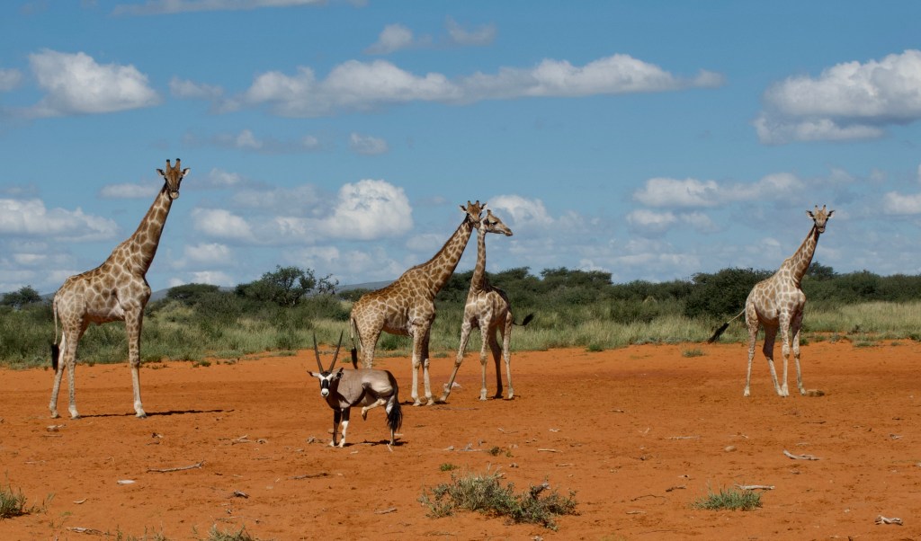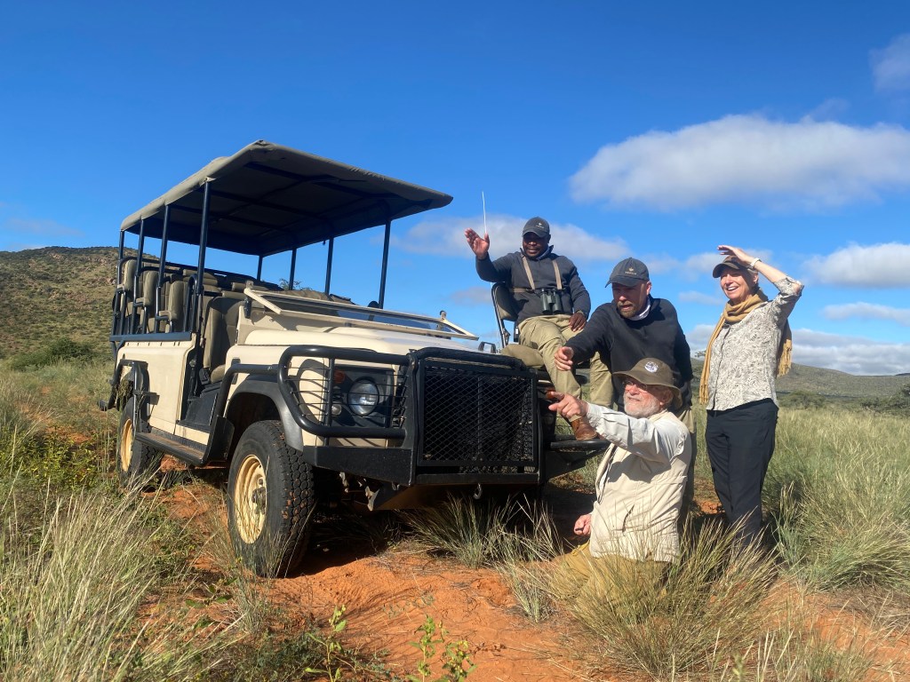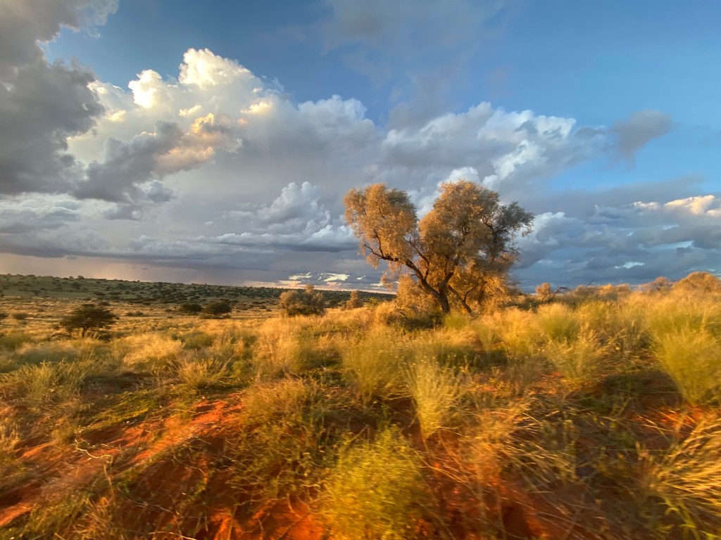 The Kalahari Desert is not really desert…. It is classified instead as semi-arid savannah. So not just sand and sun! We went to Tswalu, north of Cape Town and close to the border with Namibia. And these lucky travelers had rain… for three out of four days. This level of moisture is unheard of in these parts, but has amazing impact….. beautiful bright green grasses and scrub with red dirt, tiny flowers and blue skies.