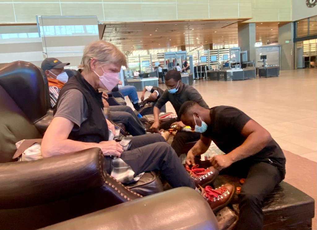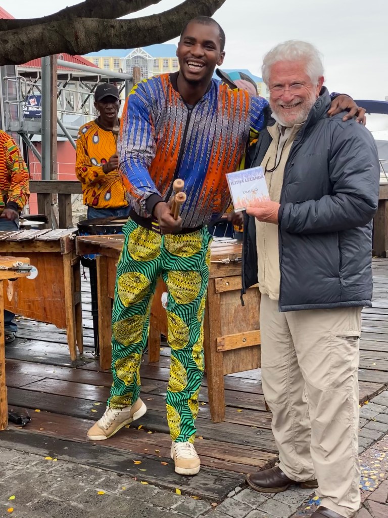Henry as usual made friends in Cape Town before we left for the bush…… with this street band, from whom he bought a CD. Love this guy’s outfit!